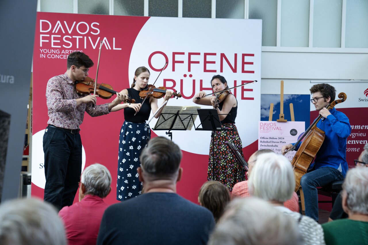 Stimmengewirr. Quietschende Gleise. Oboenkantilenen. Bei der offenen Bühne in der Schalterhalle des Bahnhofs Davos Platz vermischen sich Alltagsgeräusche mit betörenden Kammermusikklängen. Eine faszinierende Mischung, die mal irritiert, mal so fesselt, dass Reisende ihren Zug verpassen.