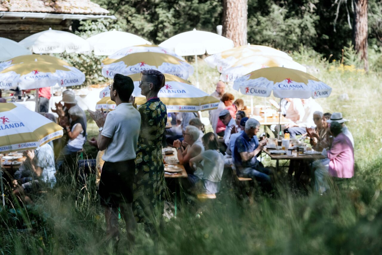 Zu einem gelungenen Festivalbrunch gehören eine stimmungsvolle Umgebung, knusprige Gipfeli, kräftiger Kaffee – und mitreissende Musik. Für die Musikerinnen und Musiker kommt noch eine Prise Wagemut hinzu: Auf dem Steg des Schwarzsees das Marimbaphon aufzubauen und ohne doppelten Boden zu musizieren, verlangt nicht nur Präzision, sondern auch Nervenstärke.